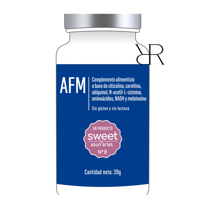 SWEET BY ASUN ARIAS Nº8 AFM es un suplemento nutricional 4 en 1 diseñado para potenciar la energía física y mental, proteger las conexiones neuronales y reducir la inflamación de bajo grado, causa principal del envejecimiento. Ideal para deportistas, estudiantes, personas con deterioro cognitivo y quienes buscan optimizar su rendimiento diario.