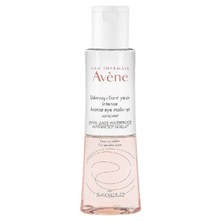 Avene Desmaquillante de Ojos Waterproof 125 ml. Es un desmaquillante de ojos intenso que elimina con suavidad el maquillaje persistente y resistente al agua. Está especialmente indicado para ojos sensibles y usuarios de lentes de contacto. No contiene perfume. Reduce la caída de pestañas durante el proceso de desmaquillado. Fórmula bifásica que combina agua termal de Avene y aceites desmaquillantes. Calma y es libre de fragancias, gracias al agua termal calmante y anti-irritante. Presenta un acabado no graso y con una concentración isotónica.