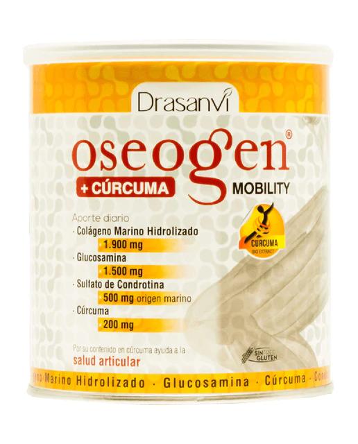 Oseogen Mobility es un complemento alimenticio único que incorpora en su composición nutrientes como el colágeno marino, la condroitina, el sulfato de glucosamina y la cúrcuma. Gracias a la presencia de cúrcuma, contribuye a aliviar los dolores musculares y articulares.