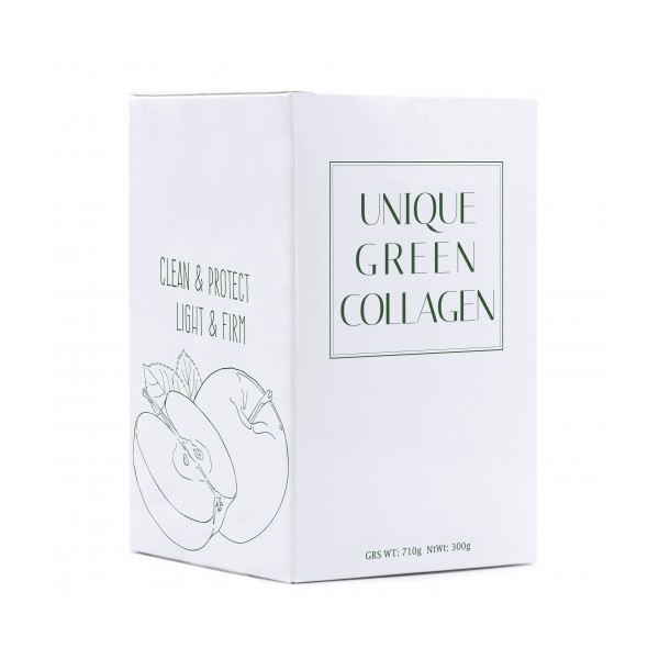 · En este sentido, cuando hablamos de la pérdida de peso o cuando queremos tratar la celulitis o reducir la retención de líquidos uno de los efectos que hemos de tener en cuenta es la firmeza de la piel. Y es justo en este punto donde interviene Unique Green Collagen, ya que además de aportar colágeno, tal y como ya hace Unique Pink collagen, Unique Green Collagen es rico en antioxidantes para preservar las fibras ya existentes de colágeno y elastina. Así, continuamos aportando prebióticos para asegurar la calidad y el contenido de la microbiota digestiva.